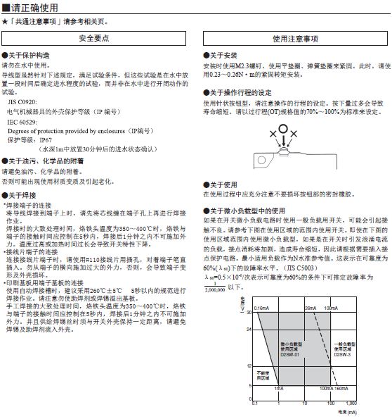 *2. 針狀按鈕型為自由位置和總行程位置上的數值,擺桿型為總行程位置上的數值。