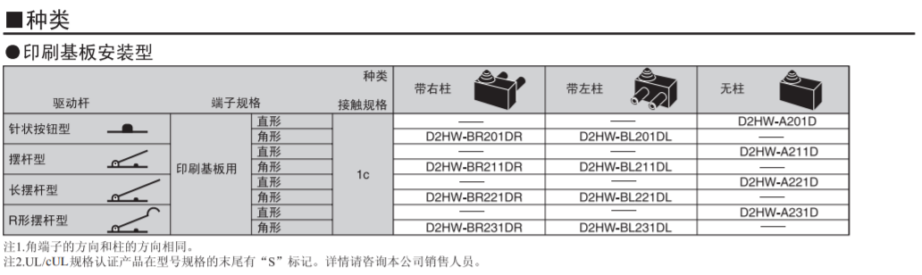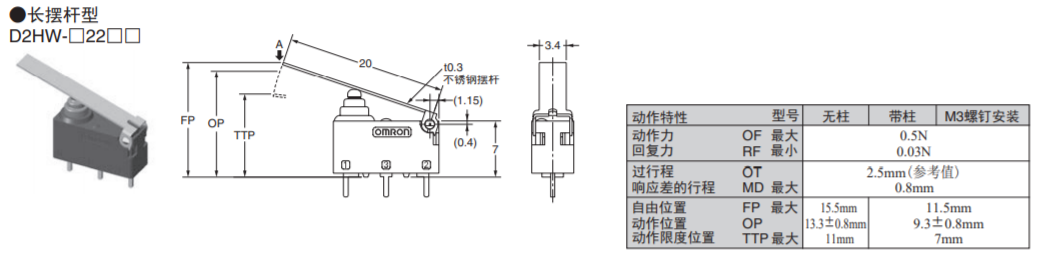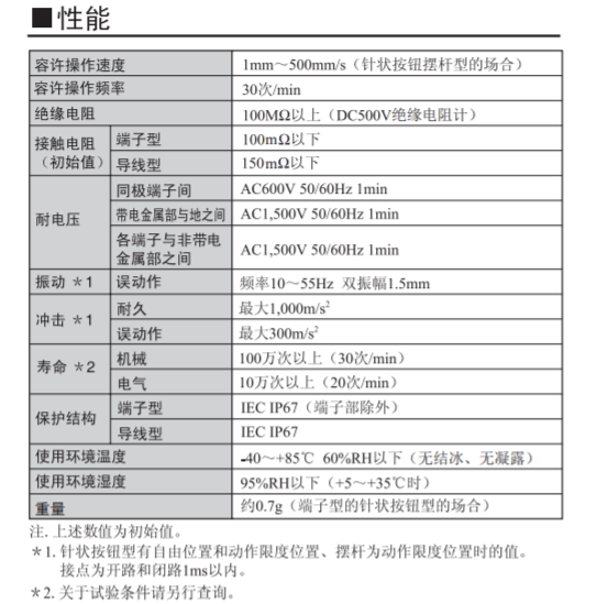 社內(nèi)較小尺寸、可進(jìn)行可靠開關(guān)的長(zhǎng)行程型開關(guān) 主體部分尺寸為前代產(chǎn)品的78%,有利于設(shè)備的小型化。 沒(méi)有擺桿也同樣使用方便的長(zhǎng)行程規(guī)格 (OT參考值 :1.4mm) 不含對(duì)環(huán)境有害的物質(zhì),導(dǎo)線類型也實(shí)現(xiàn)了無(wú)鉛化。