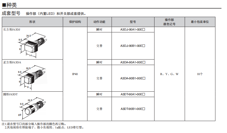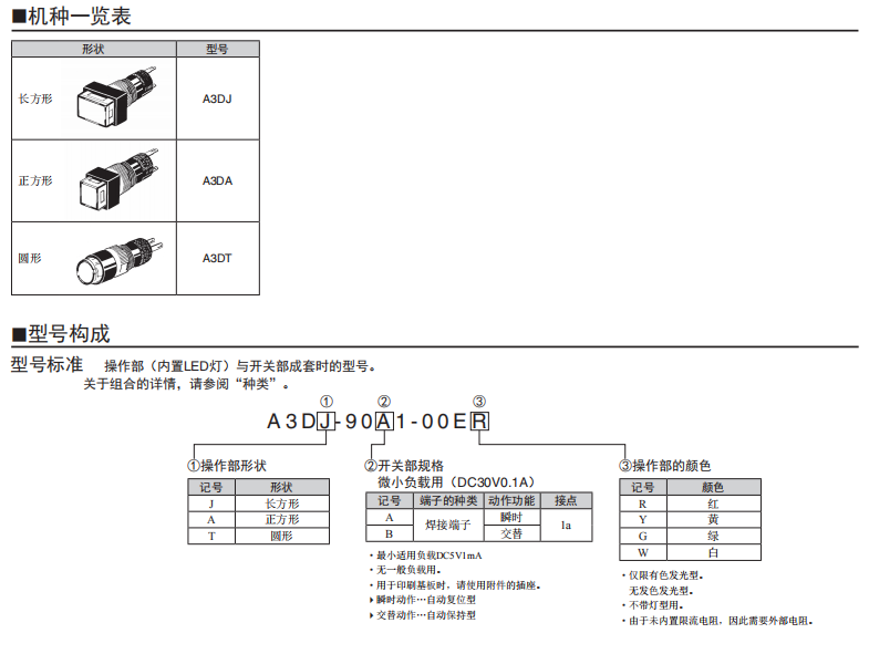 A3D 帶燈按鈕歐姆龍開(kāi)關(guān)(圓型φ8)