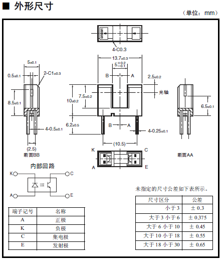 微型光電傳感器[透過(guò)型] 凹槽寬度為5mm的通用型 印刷線路板實(shí)裝型 高分辨率(狹片寬度0.5mm)