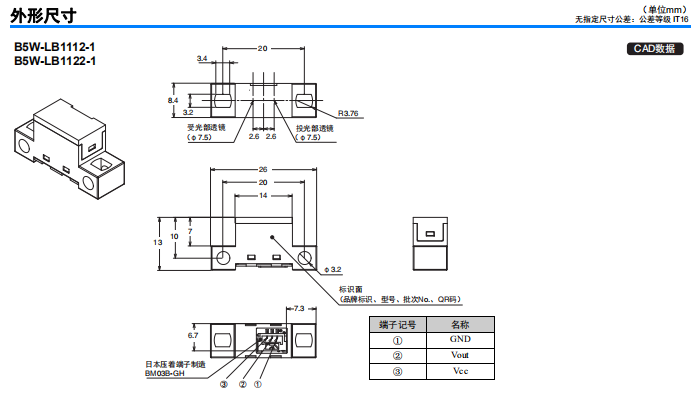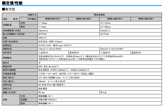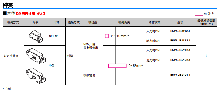 黑色、透明物體反射型傳感器B5W-LB1112-1