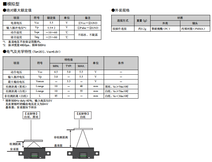 穩(wěn)定檢測(cè)鏡面、黑色及透明物體等各種物體不受背景影響,切實(shí)檢測(cè)希望檢測(cè)的物體< 距離的穩(wěn)定性 >檢測(cè)范圍廣,因此耐物體位置偏移強(qiáng)不易受外部干擾影響的設(shè)計(jì)備有模擬電壓輸出和數(shù)字輸出備有55mm和10mm的檢測(cè)距離" />